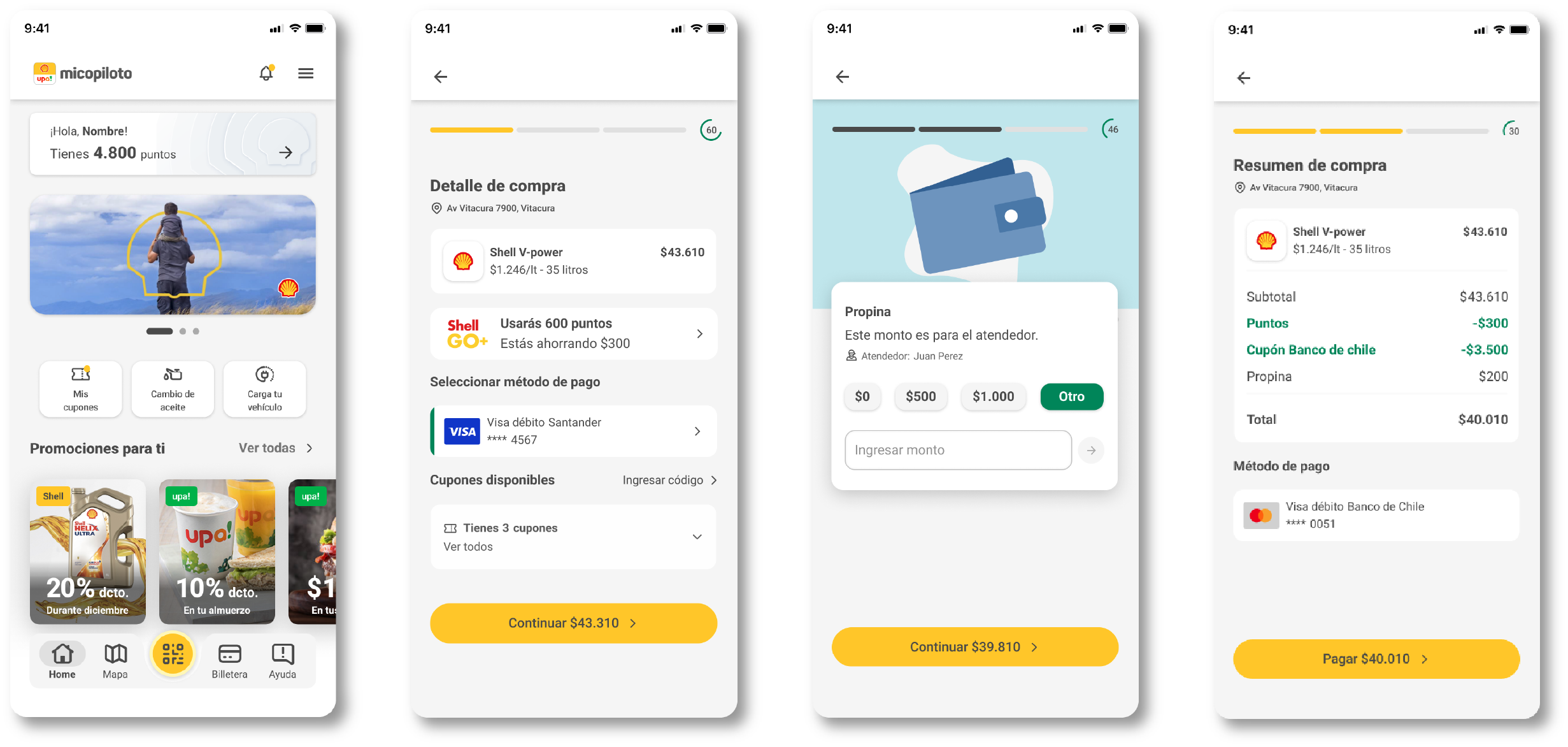 Strategic Design System: To maximize speed and future scalability, we defined and built a modular Design System. We used Shell's international guidelines as a basis, but adapted it with components specific to key Chilean retail interactions.